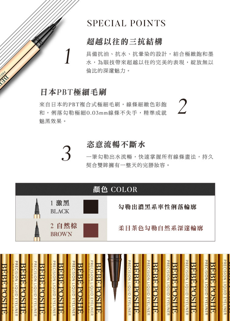 BEBEPOSHE 精準眼色持久眼線液筆(黑)